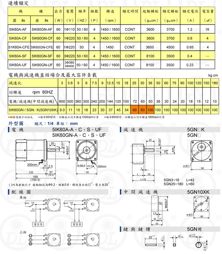 Thông tin kỹ thuật mô tơ giảm tốc mini Dolin 60W: